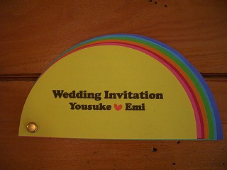 ↑洋介さんと英実さんの招待状のデザインにもなった「レインボー」。直島の爽快な空と大地にぴったりなイメージで、「レインボー」が起用されていたのですが・・・。ウエディングケーキのデザインも、「レインボー」で決定!!しました。