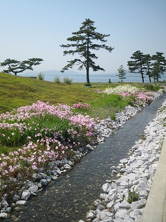 ↑「ベネッセアートサイト直島」内には、小川が流れています。花がいっぱい咲いていました。きっと、来週、お二人の結婚式当日も、季節感ある花々も祝福してくれることでしょうね!